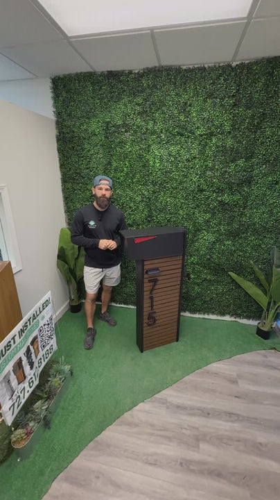 Elevate your home’s exterior with the Solara Slatwall Composite Mailbox, a contemporary take on our classic cedar design. This updated version features sleek black composite edges paired with a horizontal slat wall composite, creating a striking look that stands out on any curb. The black backdrop enhances the modern aesthetic, while the durable materials ensure that this mailbox is built to withstand the elements. Check out our photos to see the premium craftsmanship up close. Feel free to message or call us with any questions :)